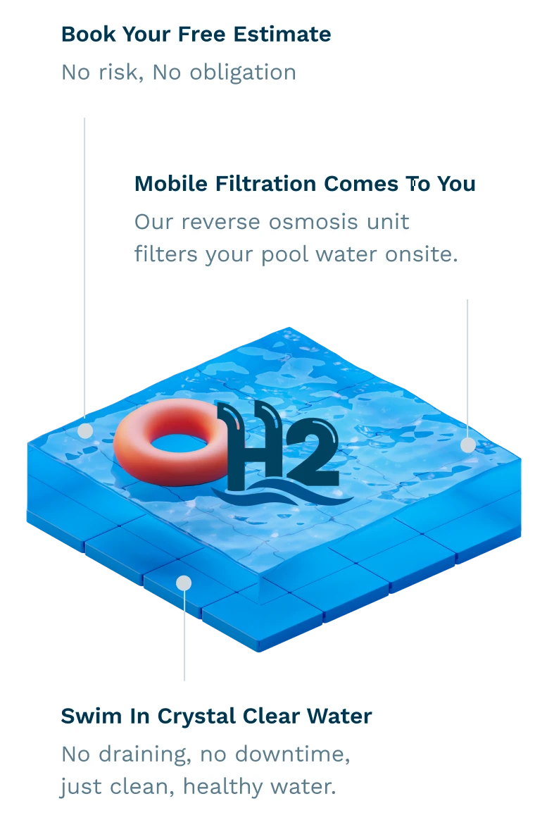 H2-RO is a local, family-owned and operated mobile reverse osmosis filtration service dedicated to helping pool owners keep their water crystal clear, healthy, and comfortable to swim in. Our process reduces the need for high levels of chlorine and other chemicals, making your water gentler on skin and eyes. By removing excess calcium hardness, total dissolved solids, and other unwanted contaminants, we restore your pool water to a higher quality than a fresh fill, providing a safer and more enjoyable swimming experience.